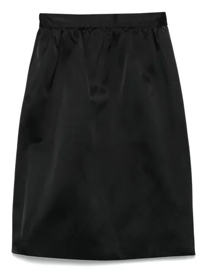 Pre-owned Black Silk Logo Print Midi Skirt S