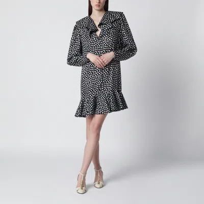 Black Silk Jacquard Mini Dress With Polka Dot Print