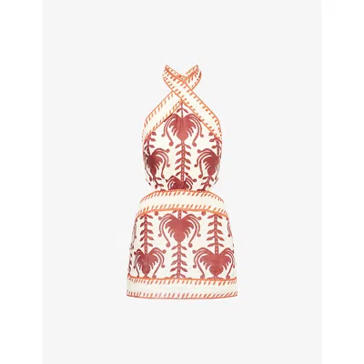Wild Savannah Shell-embellished Linen Mini Dress In Multi
