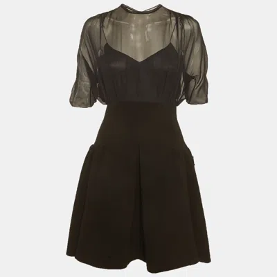 Pre-owned Black Chiffon And Crepe Flared Mini Dress S