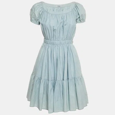 Pre-owned Blue Denim Puff Sleeve Mini Dress Xs