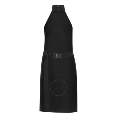 Halter Neckline Belted Sleeveless Dress In Black