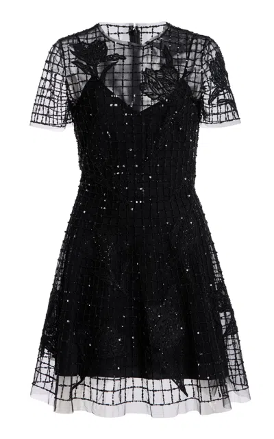 Embellished Silk-trimmed Wool And Silk-blend Crepe Mini Dress In Black