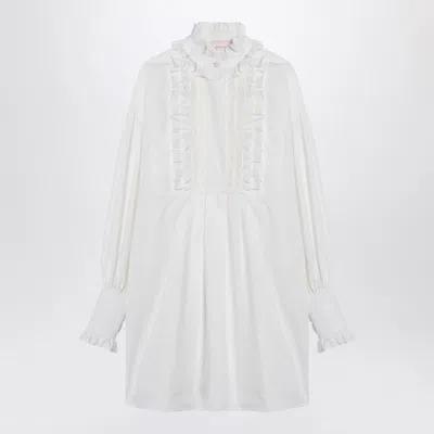 White Mini Chemisier Dress With Ruffles