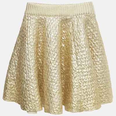 Pre-owned Gold Metallic Coated Knit Mini Skirt Xs