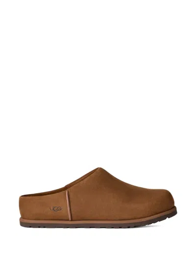 Brown Leather Mules In Multi