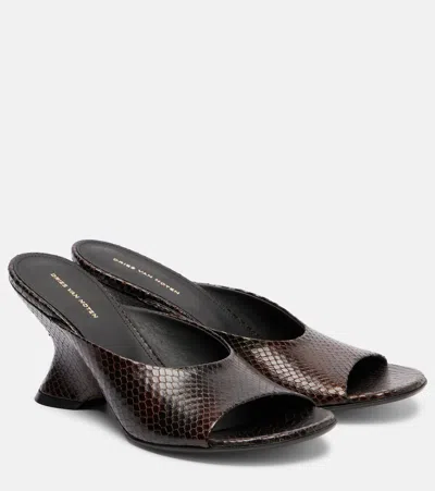 75蛇纹效果皮革坡跟穆勒鞋