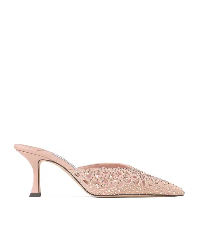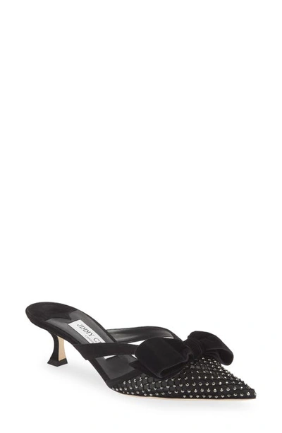 Flaca 50 Bow And Crystal-embellished Mesh And Suede Mules In Black