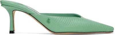 Vivi 65 Embellished Lizard-effect Leather Mules In Aqua Green