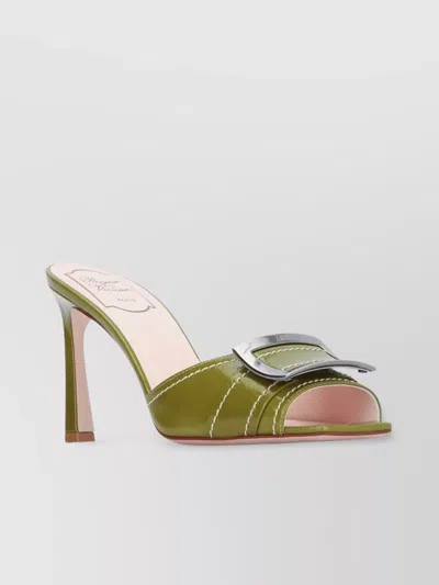 Stitching Mule 85 Buckle Open Stiletto In Green