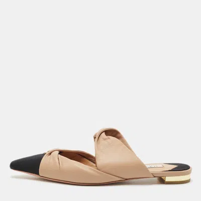 Pre-owned Beige/black Leather And Fabric Twist Cap Toe Mules Size 35