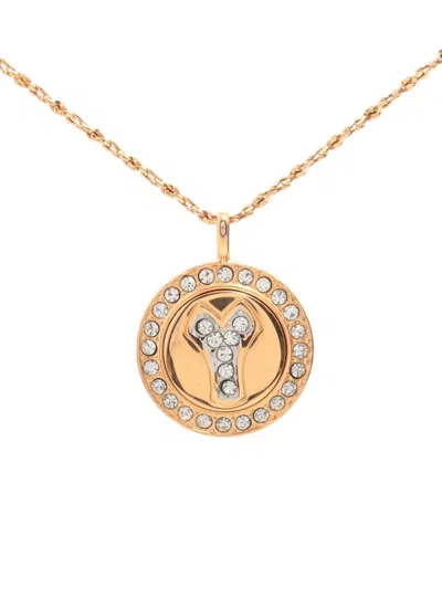 Pre-owned Rhinestone-embellished Necklace In Gold