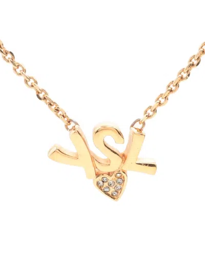 Pre-owned Ysl--logo Heart-pendant Necklace In Gold