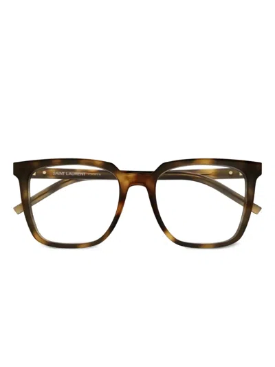 Horsebit Fork Temple Metal Square Frame Optical Glasses In Metallic