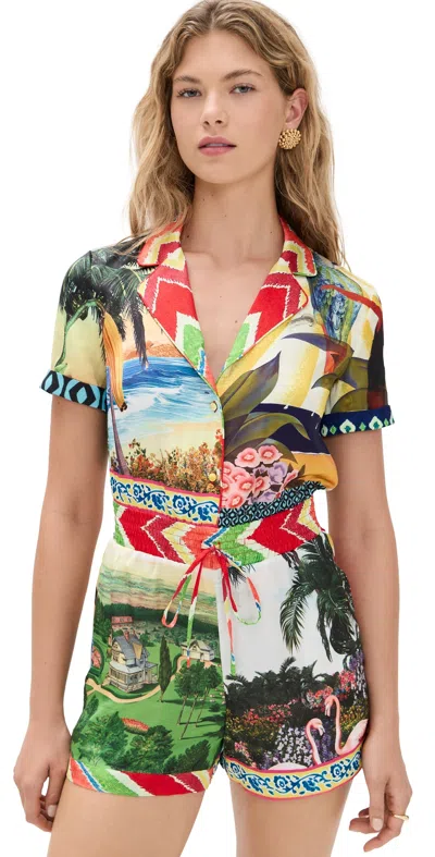 Leighton Pajama Romper Island Dreams Multi In Brown