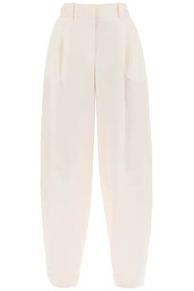 Women Tailored Trousers In Fluid Viscose And Linen Twill With Double Pleats In Neutral