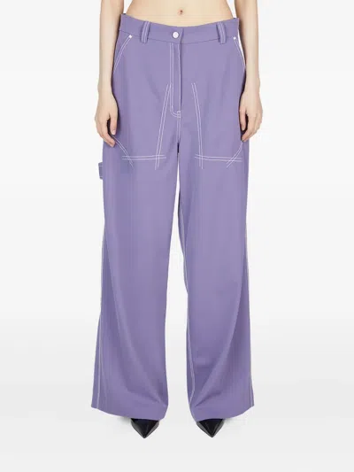 Flared Zigzag Pattern Trousers With Soft Texture In Multicolor