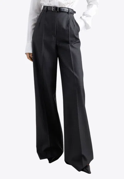 Wide-leg Tailored Wool Pants In Black