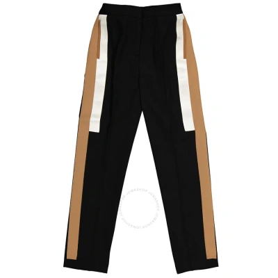 Ladies Stripe Detail Wool Tailored Trousers In Black