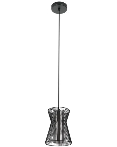 Palmorla 1 Light Open Frame Metal Pendant With Structured Black Finish & Wood Accent
