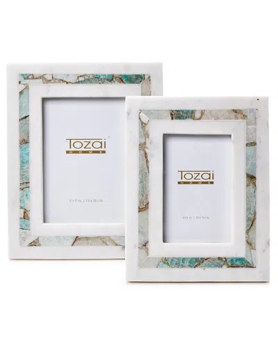 Amazonite Inlay Set Of 2 White Marble Photo Frames In Green