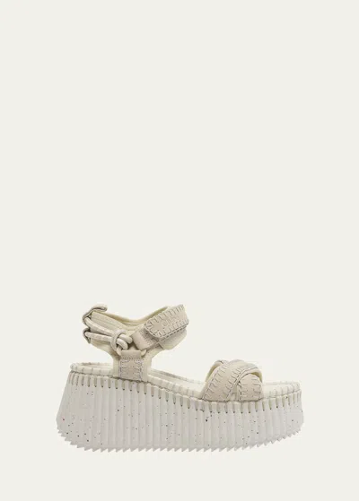 Braided Suede Platform Sandals In Black Natural In White
