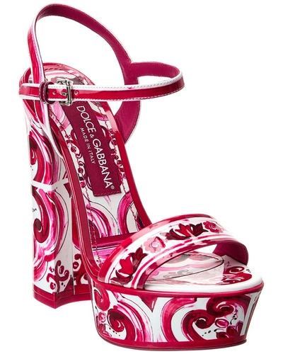 Printed Leather Ankle-strap Platform Sandals In Pink