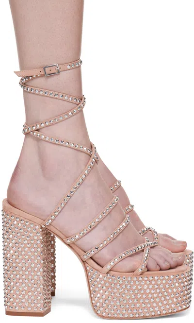 Holly Evita Crystal Leather Platform Sandals In Pink