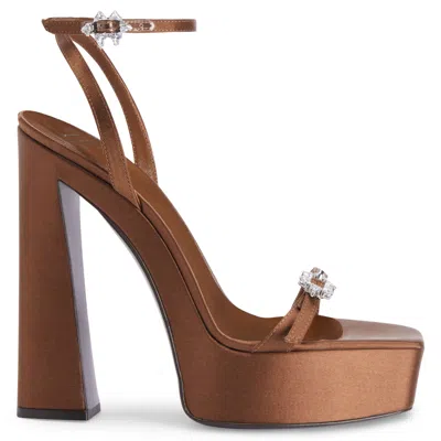 Gleam Embellished Gathered Suede Platform Sandals In Brown
