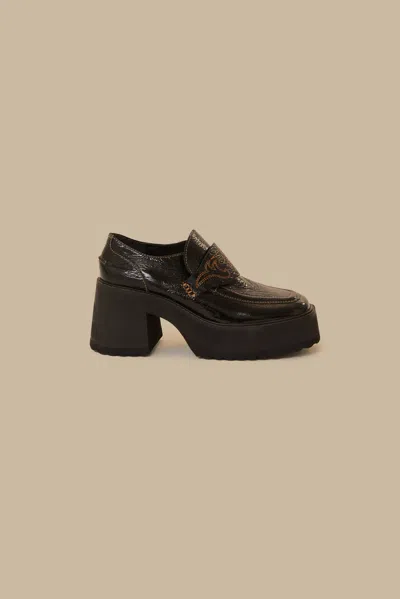 Black Platform Loafer In Brown