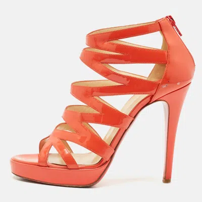 Pre-owned Orange Patent Leather Fernando Platform Sandals Size 38