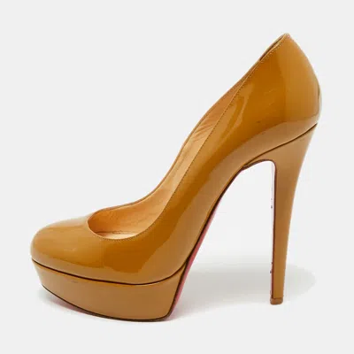Pre-owned Beige Patent Leather Lady Peep Peep Toe Pumps Size 36 In Sand