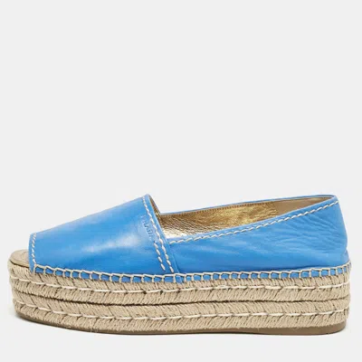 Pre-owned Blue Leather Open Toe Platform Espadrilles Size 39