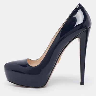 Pre-owned Blue Patent Leather Platform Pumps Size 38