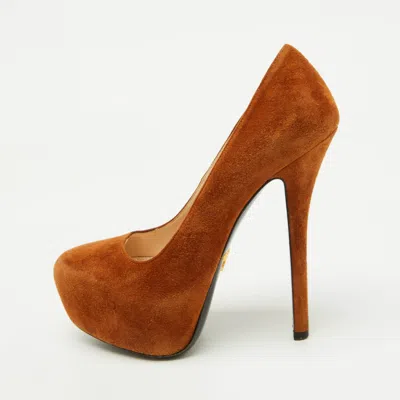 Pre-owned Brown Suede Round Toe Platform Pumps Size 36