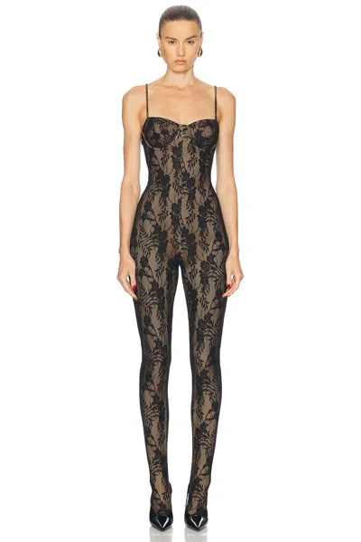 Mesh Crew Neck Catsuit Printed Medaillon In Multi