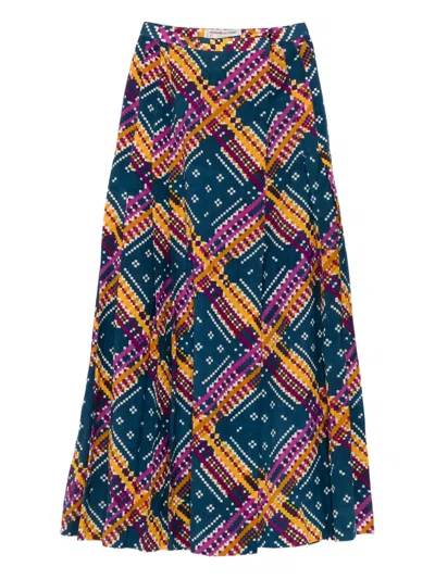 Pre-owned Blue Striped Cotton Pleated Skirt M