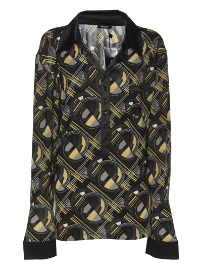 Pre-owned Patterned Long-sleeve Polo Top In Black