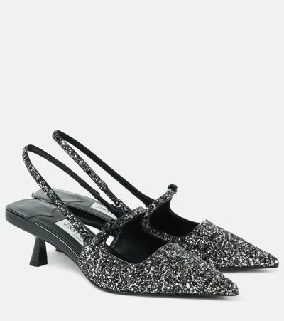 Pointed Pumps In Chunky Glitter And Leather In Metallic
