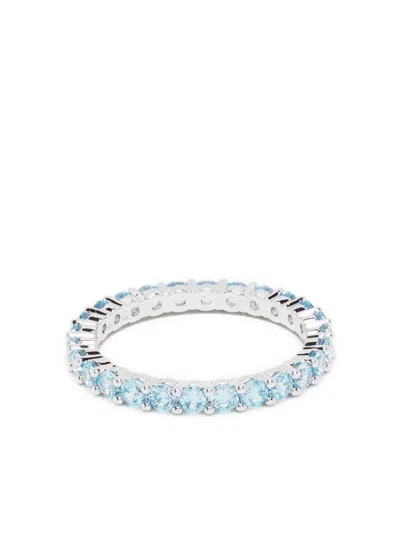 Matrix Band Ring Rhodium Shiny Aquamarine In Blue