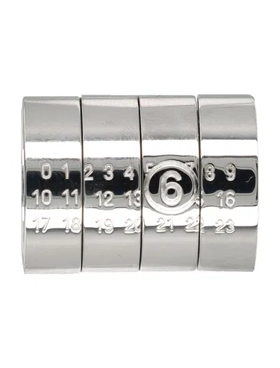4 Ring Modular Stacked Numeric Silver Ring Set In Metallic
