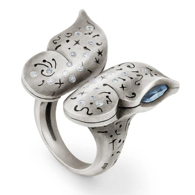 Butterfly Ring With Diamonds In Sterling Silver