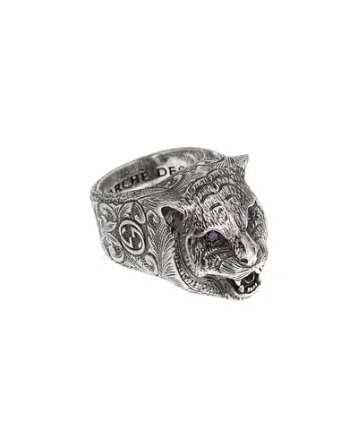 Silver Chain Link Enamel Logo Band Ring In Metallic
