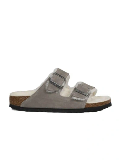Chic Sheepskin Sandals With Adjustable Strap And Cushioned Sole In Black