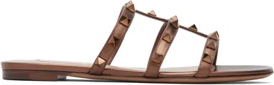 Bronze Rockstud Flat Metallic Nappa Slide Sandals In Brown