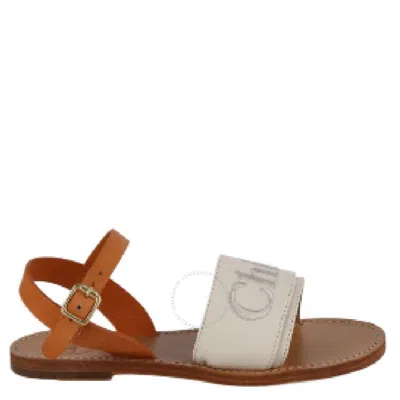 Chloe Kids Logo-embroidered Leather Sandals In White