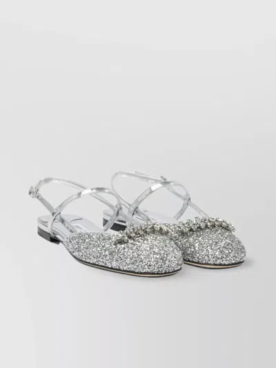 Glitter Pointed Toe Sandals With Embellished Detail In Silver