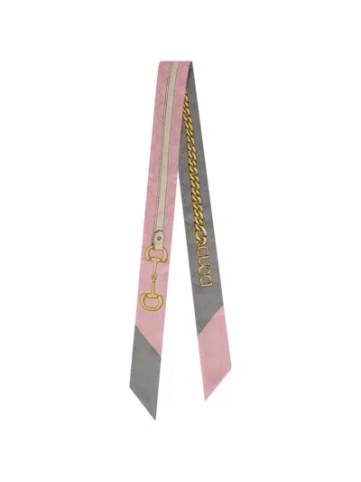 Gg Silk Scarf (authentic Pre-loved) In Gray