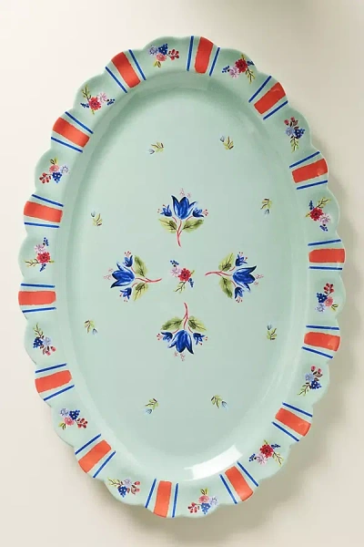 Ceramic Dépareillé Oblong Serving Platter In Blue
