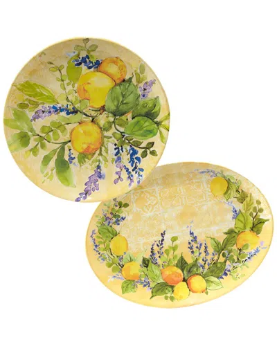 Melamine 2pc Lemon Zest Platter Set In Multicolor
